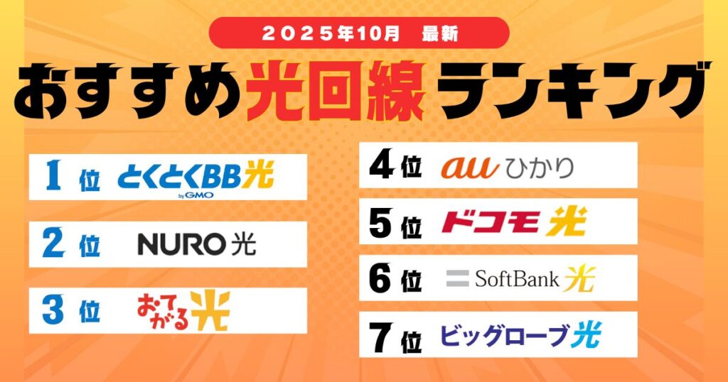 そのような悩みを抱えている方に向けて、2025年10月最新版の光回線ランキングをご紹介します。