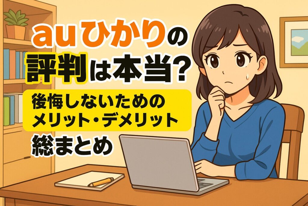 「auひかりって評判いいけど、実際どうなの?」「契約して後悔しないかな?」「他の光回線と比べて何が違うの?」 auひかりは、高速通信やお得なキャンペーンで注目される光回線の一つです。 しかし、利用者のリアルな評判や、他の回線と比べた使い勝手が... -