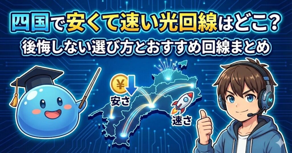 「四国で使える光回線って、どれを選べばいいの?」「料金が安いだけじゃ不安。速度やエリアもしっかり比較したい」 引越しや乗り換えで光回線を探すとき、こんな疑問を感じる方は少なくありません。 特に四国エリアでは、全国対応の回線だけでなく、地域... -