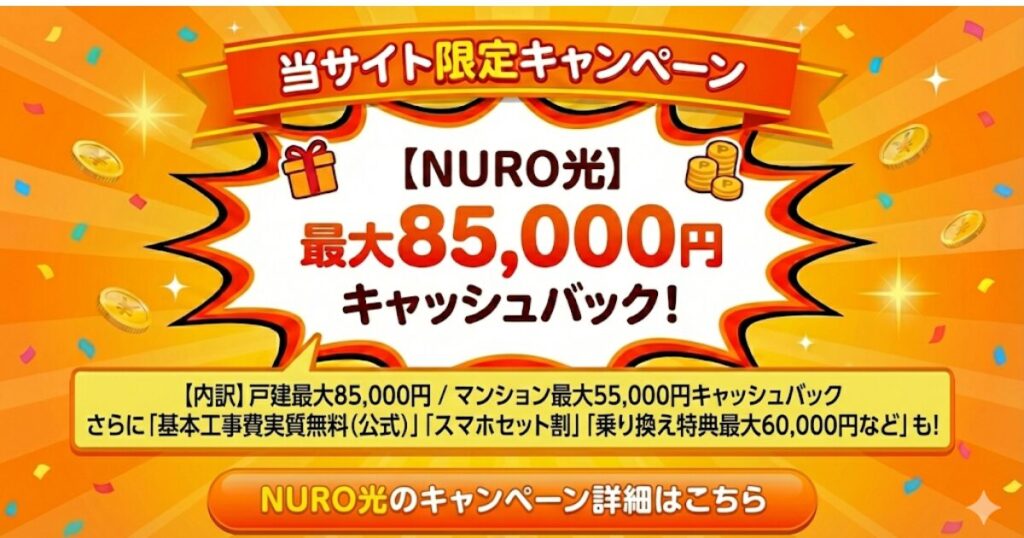 - デメリット: 数万円規模の派手なキャッシュバックキャンペーンは少なめ。